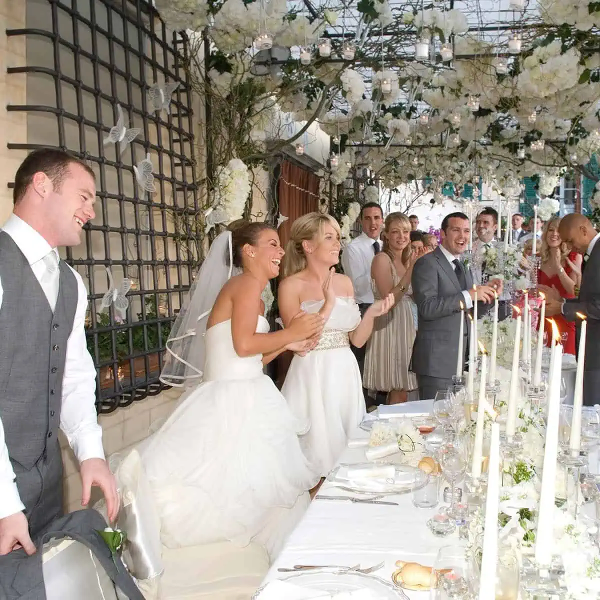 Por US$ 8 milhões de dólares, o jogador de futebol Wayne Rooney se casou com sua namorada de infância Coleen McLoughlin, em 2008, na Abadia de Cervara, perto de Gênova, Itália.
