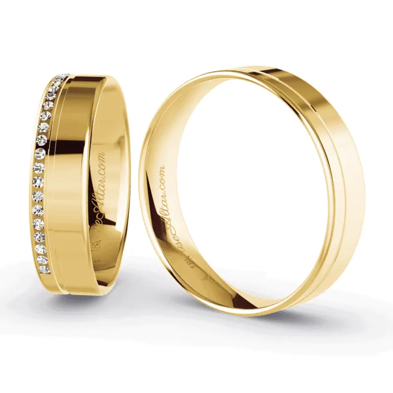O formato externo reto da aliança de casamento, é aquele que suas bordas são retas.