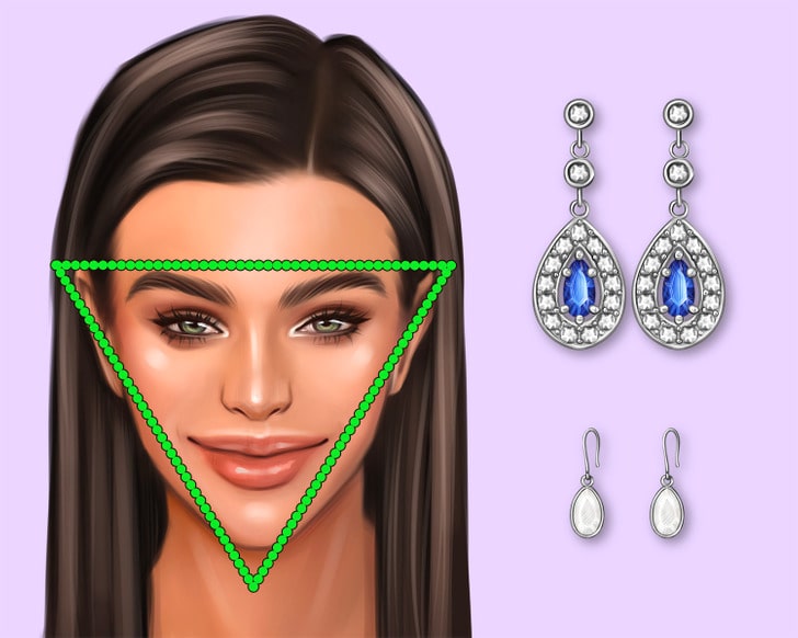 Com esse tipo de rosto, o ideal é usar brincos médios ou pequenos que tenham mais volume na parte de baixo e na altura do maxilar.