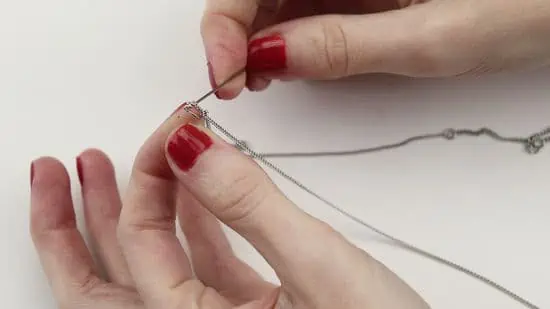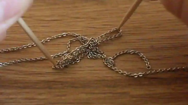 Assim como dito com o alfinete, as agulhas também ajudam bastante quando a corrente é bem fina ou os nós são bem justos que não podem ser alcançados com as mãos.