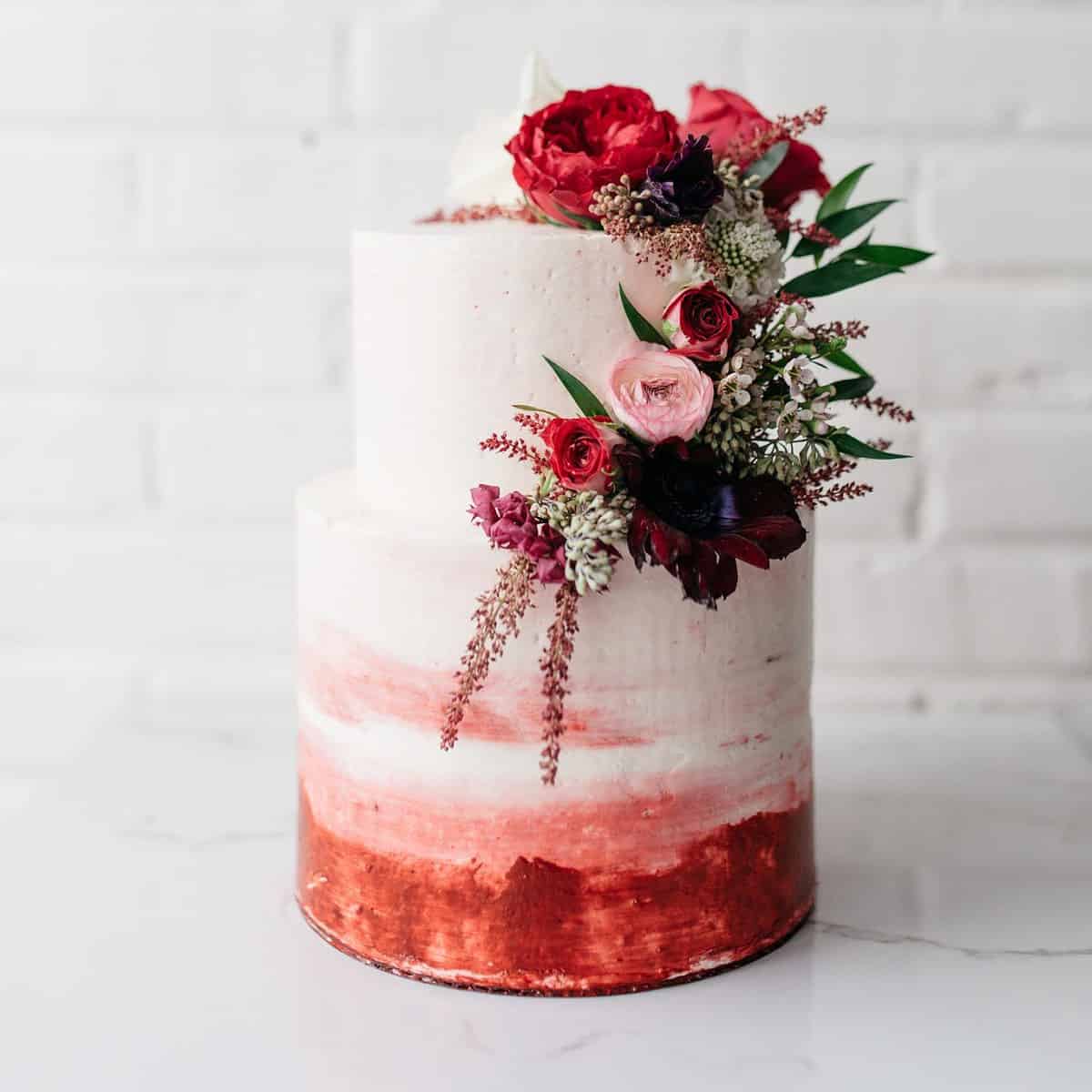 Existem diversas opções de elementos para compor a decoração do seu bolo, como flores comestíveis, uso de corantes e técnicas que aplicam cores em degradê.