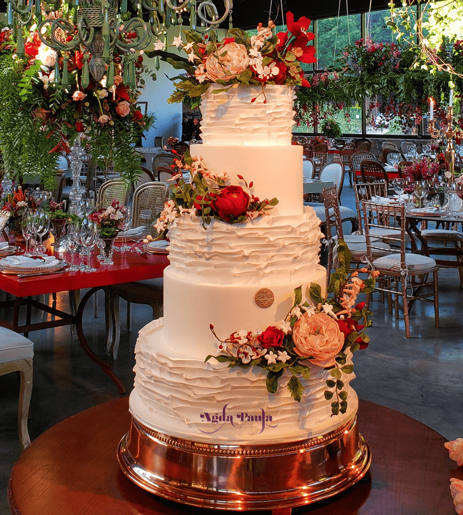 O Ruffle cake é um bolo cheio de personalidade e delicado, além de ser um bolo extremamente lindo e contribui para o aspecto visual da sua cerimônia.