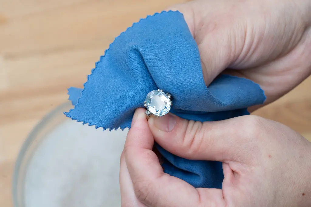 Seque a aliança completamente com um pano macio e limpo. Certifique-se de que não haja umidade restante.