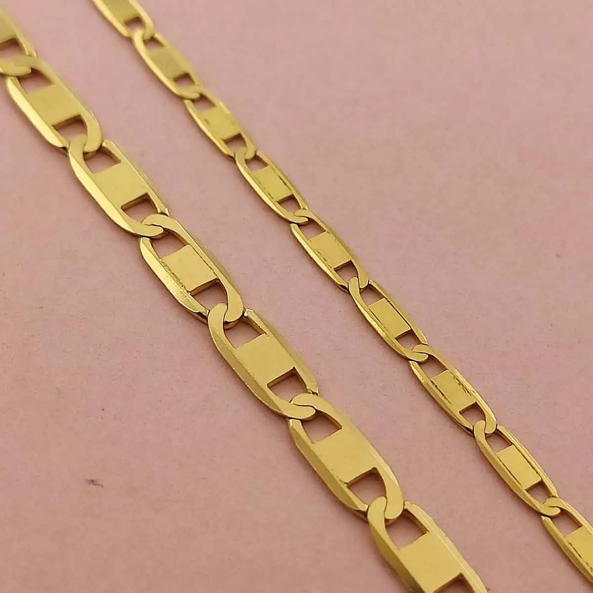Outra característica interessante da corrente piastrine, é o brilho intenso que a joia reflete devido ao formato regular dos elos.