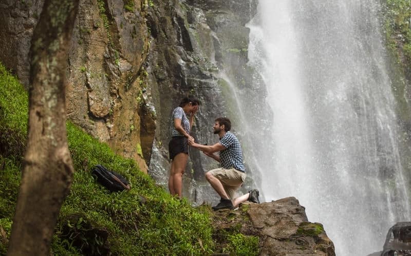 Existem várias atrações para serem exploradas por lá e toda natureza ao redor dá um ar romântico para o momento do pedido.