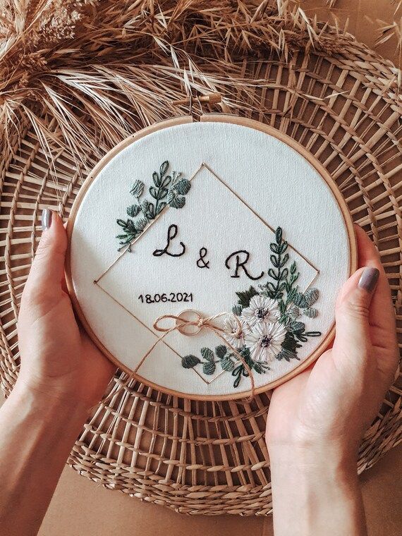 Esses tecidos são bordados em um bastidor e podem ser da forma que os noivos quiserem.